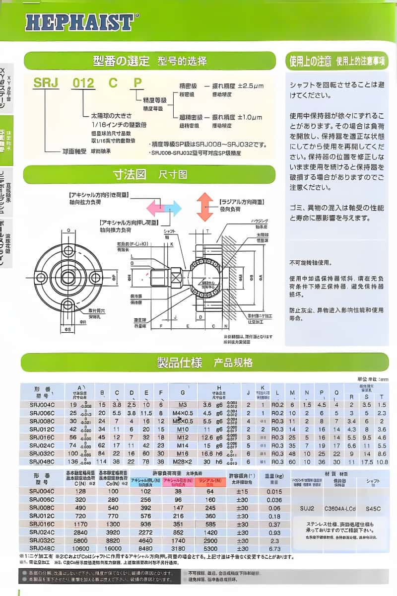 Hephaist萬向球鉸, SRJ012CSP