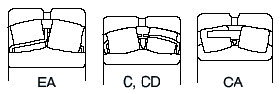 調(diào)心滾子軸承,如圖所示,有高負(fù)荷容量設(shè)計(jì)的EA型,C型,CD型,CA型。設(shè)計(jì)上, EA型,C型,CD型 為沖壓保持架, CA型為銅合金車制保持架。EA 型軸承具有高負(fù)荷容量,低轉(zhuǎn)矩的特長(zhǎng)。